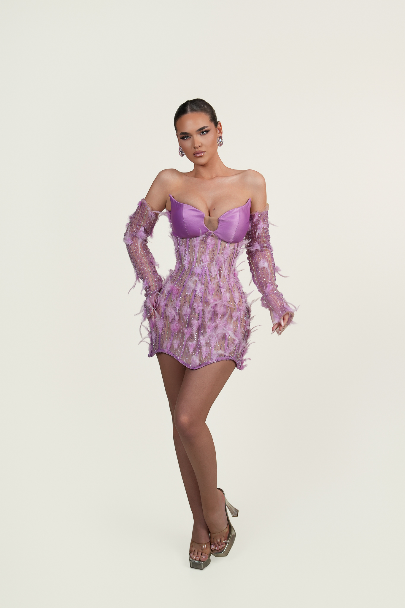 - Off-the-shoulder long sleeves adding a touch of elegance and allure